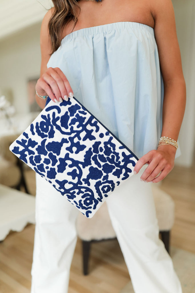 The Becky Pouch in Light Blue is a stylish and functional accessory. With a zip closure and spacious interior, it's perfect for carrying all your essentials. The perfect pop of color to your outfit!
