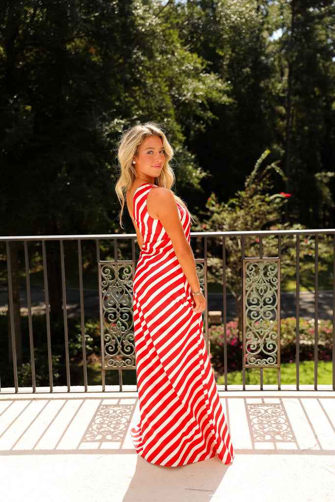 Lenora Dress - Red Stripe