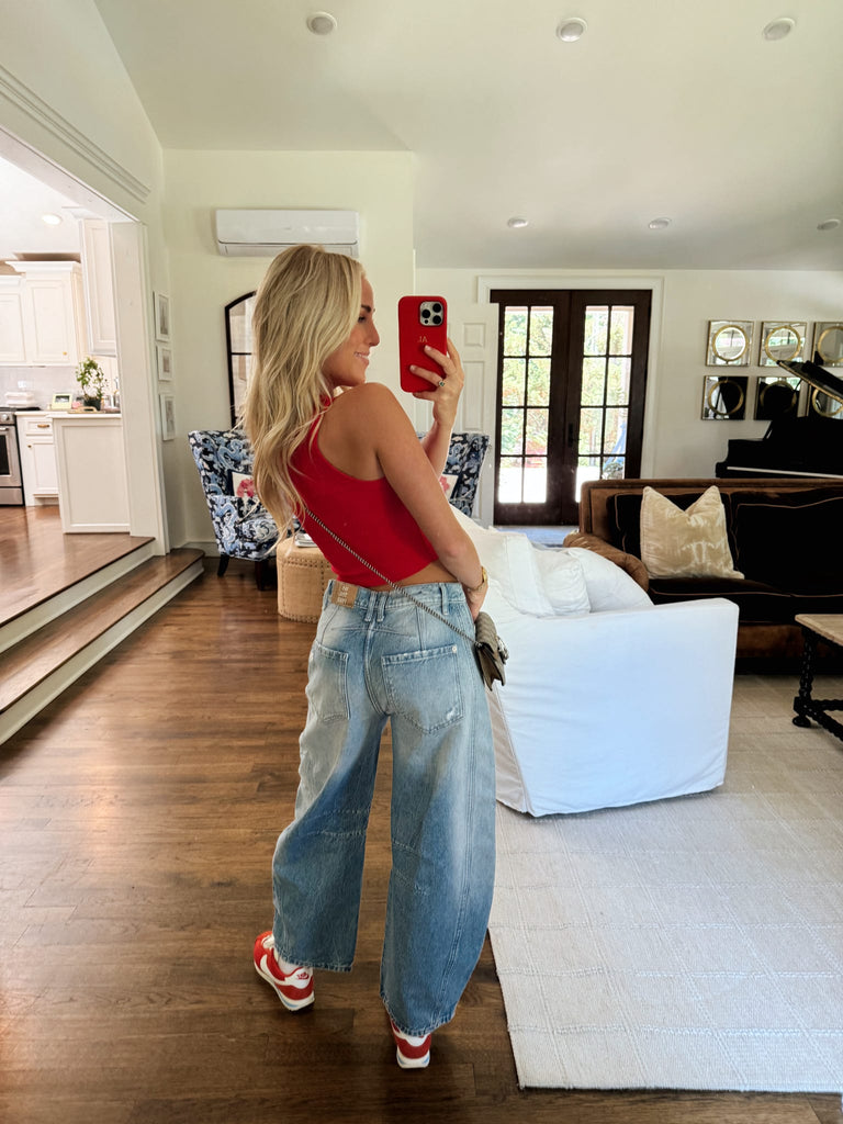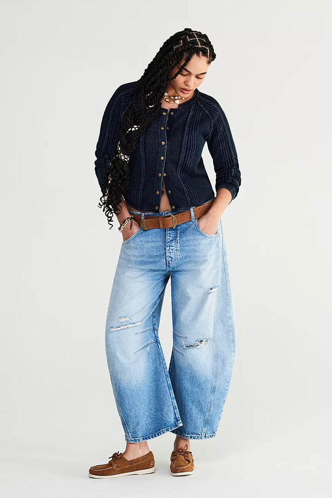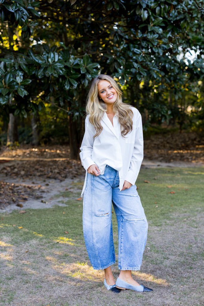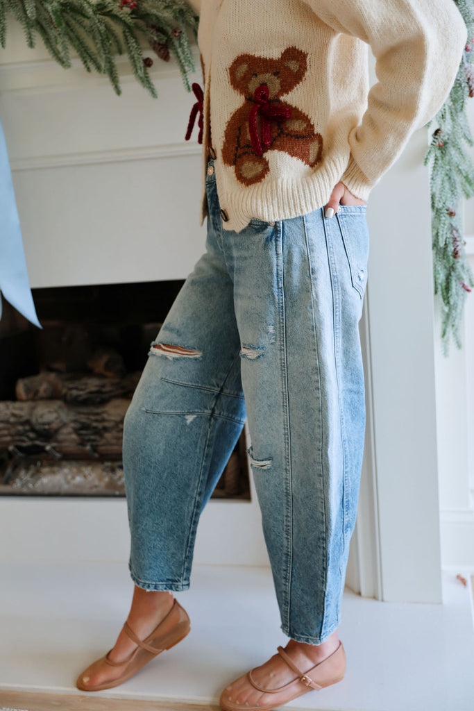 Good Luck Mid-Rise Barrel Jeans - Barnyard Blue