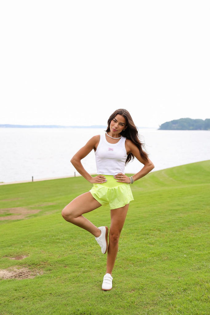 Elevate your essentials with our refined Cocolillys Tank in white. This fitted silhouette features a ribbed material and is adorned with our distinctive Cocolillys emblem!