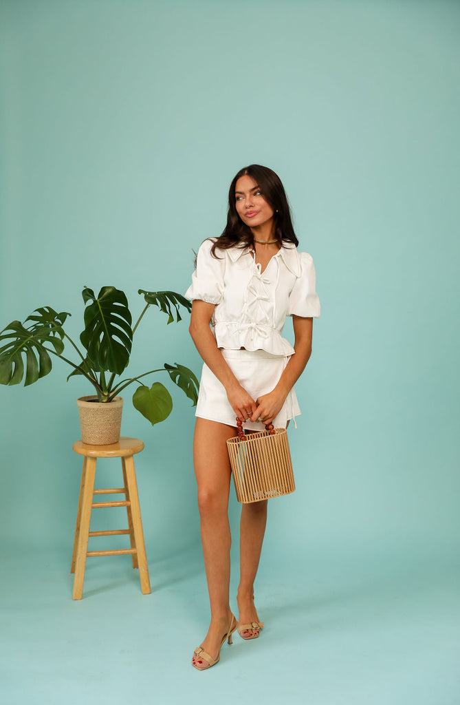 The perfect addition to your wardrobe! Featuring a stylish collar and puff sleeves, plus tie front detailing for that extra touch of charm.