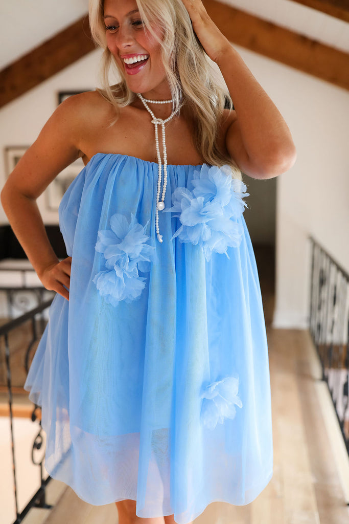 A strapless silhouette designed for those who appreciate refined elegance. This go-to mini dress features intricate 3D floral detailing. The strapless neckline offers a timeless, sophisticated look, while the mini length keeps the style contemporary and versatile.