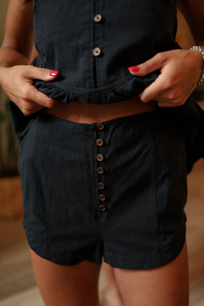 Made for warmer weather, this chic set is featured in a cool cotton-linen blend with a sleeveless top and matching mid-rise shorts.