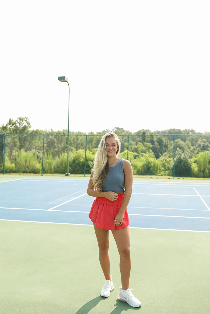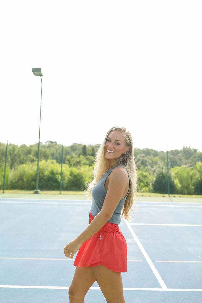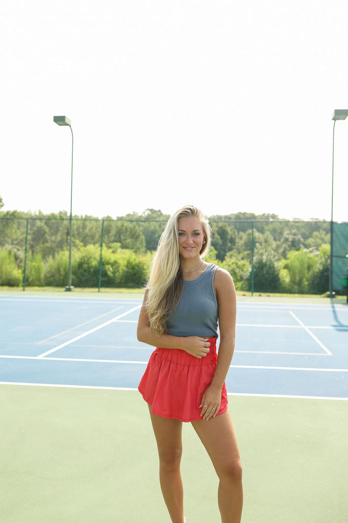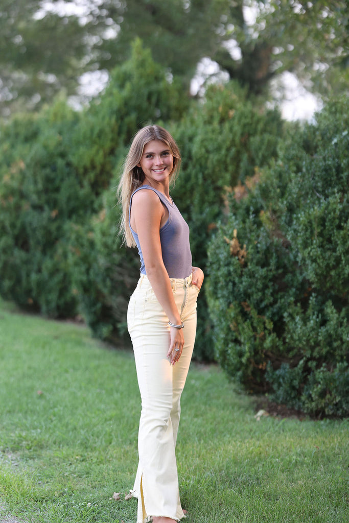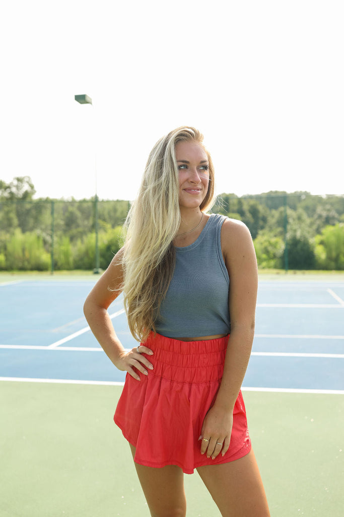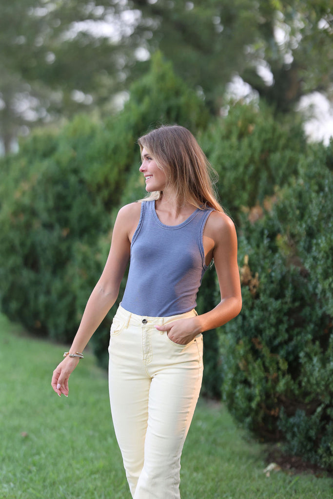 Classic tank featured in a slim-fitting silhouette and light weight design with a scoop neck and slightly cropped length.