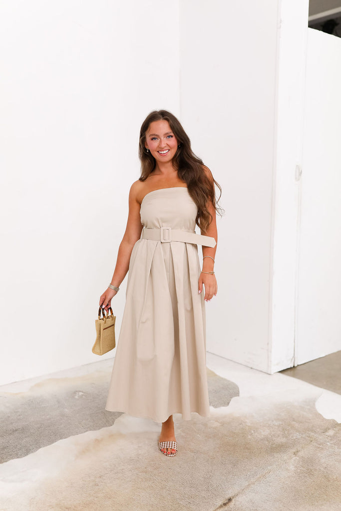 This strapless dress is designed to flatter and features a matching belt. Available in two colors beautiful color options.