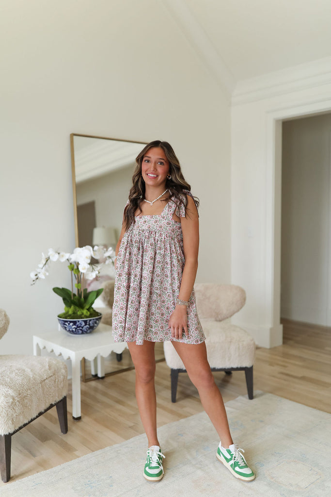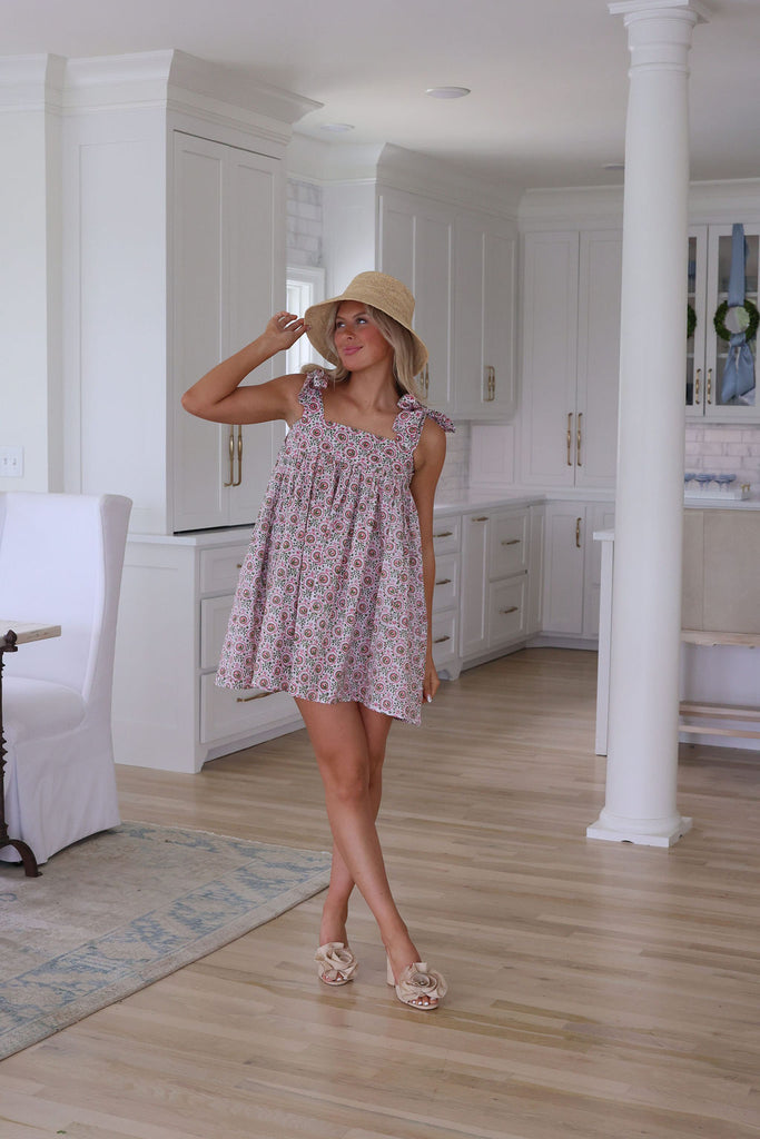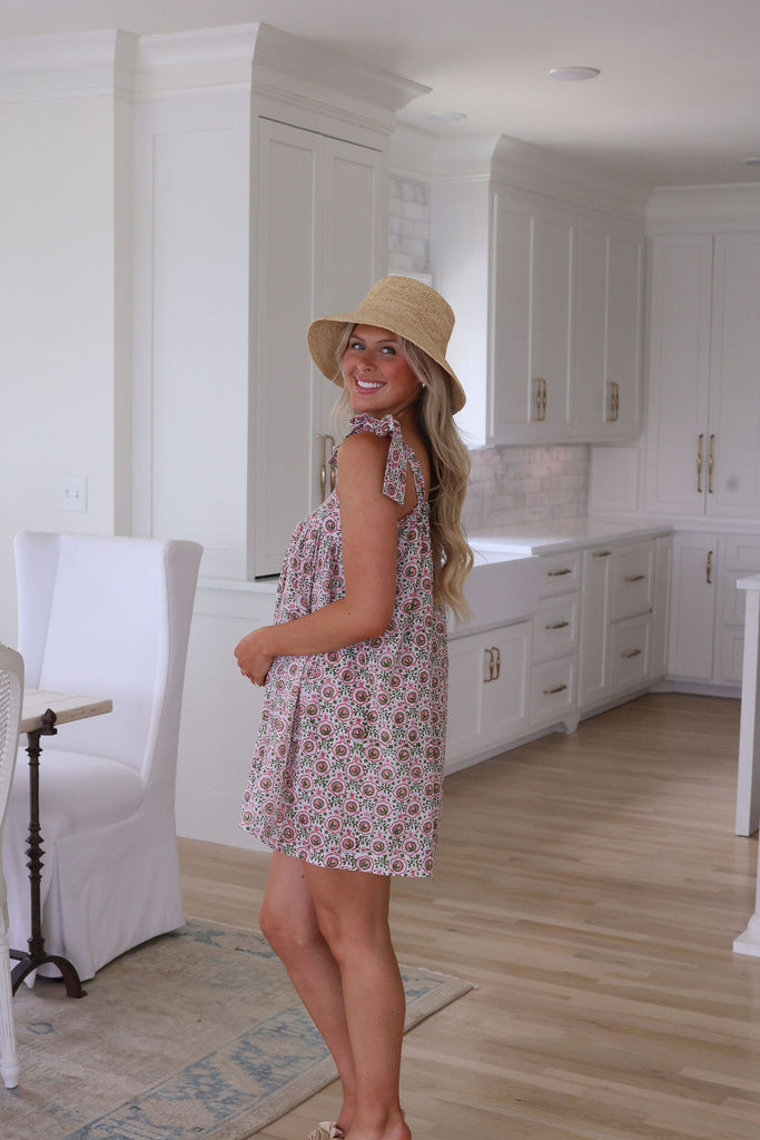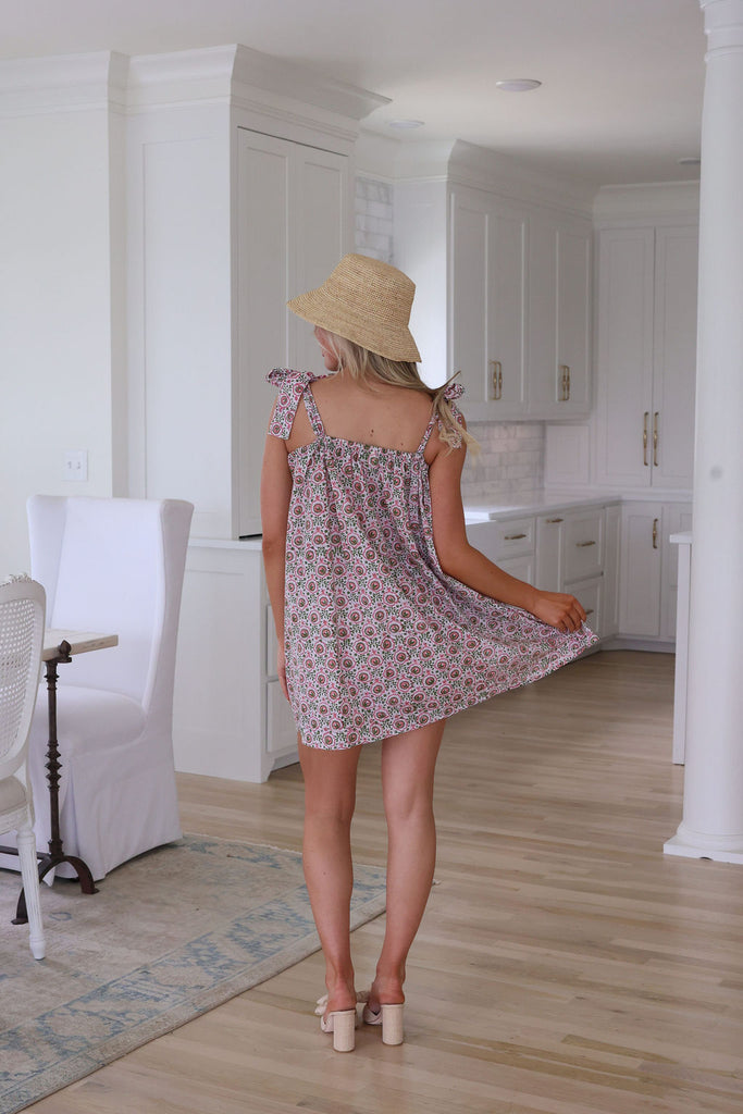 Our new favorite mini dress! Featuring sleeveless tie shoulder straps and available in a variety of floral color prints.