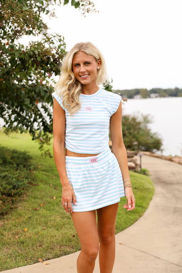 This playful baby tee features a trendy cropped cut with cap sleeves and ruched sides for a flattering fit. This collection is perfect to mix and match! It offers endless styling options to brighten up your wardrobe. Available in a variety of colors!
