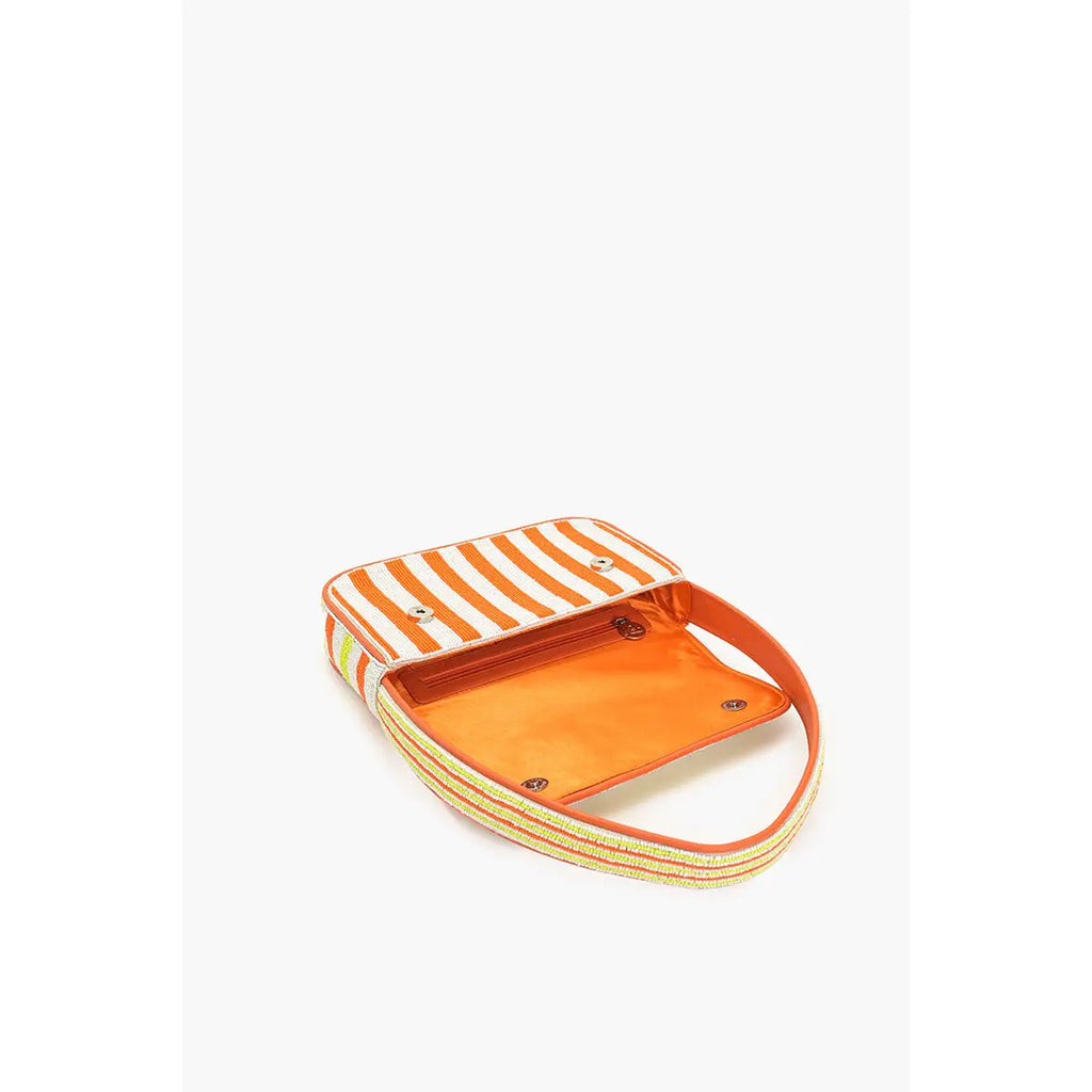 Structured Shoulder Bag Featuring Sun-Kissed Bright Orange and Neon Green Striped Embellishments