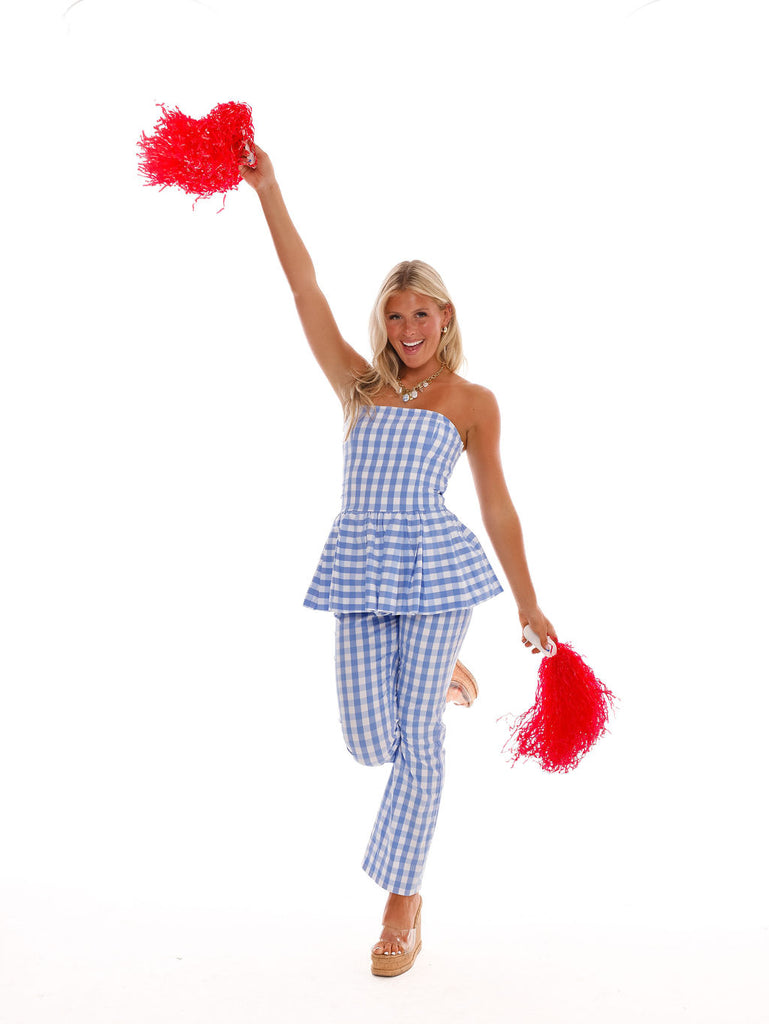 The NEW coco exclusive kick flare pant have a slight stretch in full length. These pants feature a red gingham print, perfect for making a stylish statement. Pair it with the matching Coco Park top, sold exclusively as an individual piece.