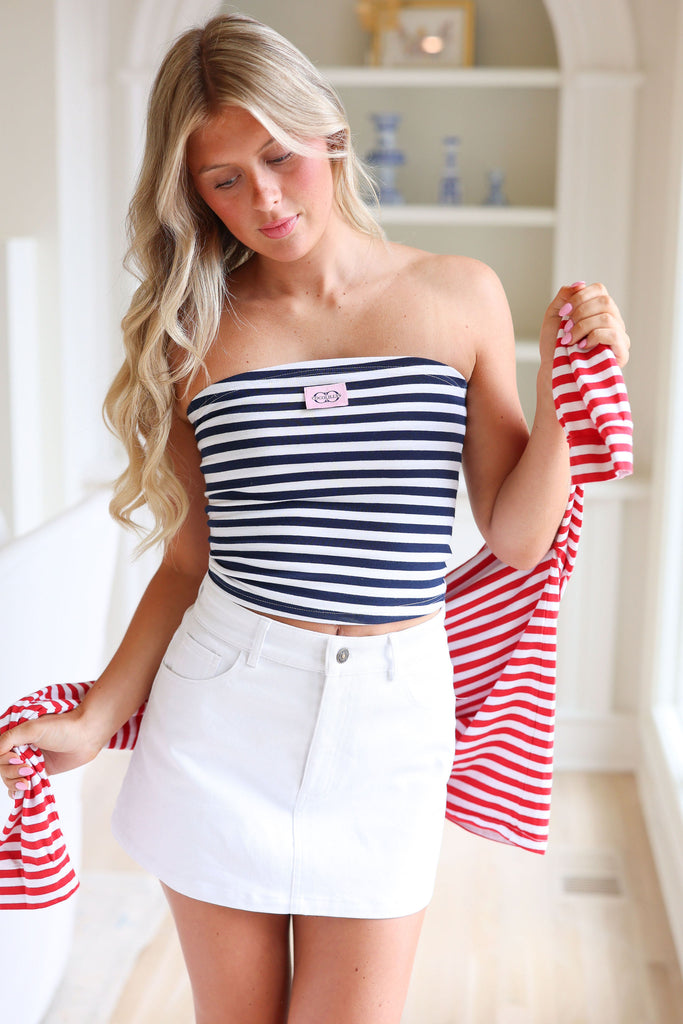 This strapless top features a trendy cropped cut and adorned with the Cocolillys emblem. This collection is perfect to mix and match! It offers endless styling options to brighten up your wardrobe. Available in a variety of colors!