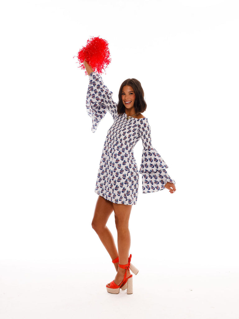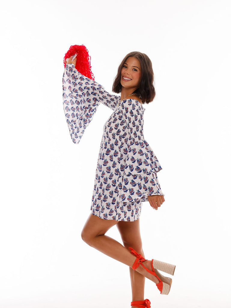 The sweetest style for summer! An off the shoulder design with bell sleeves.