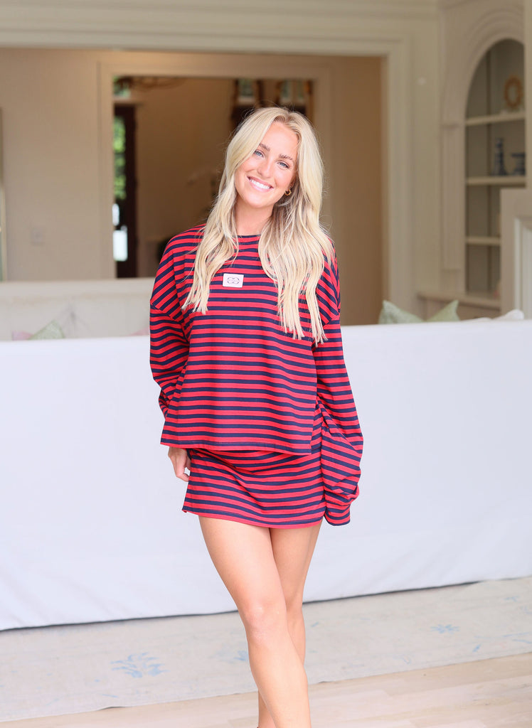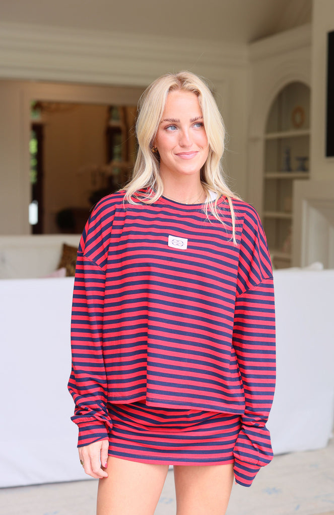 Stripe Oversized Long Sleeve Tee - Navy/Cherry
