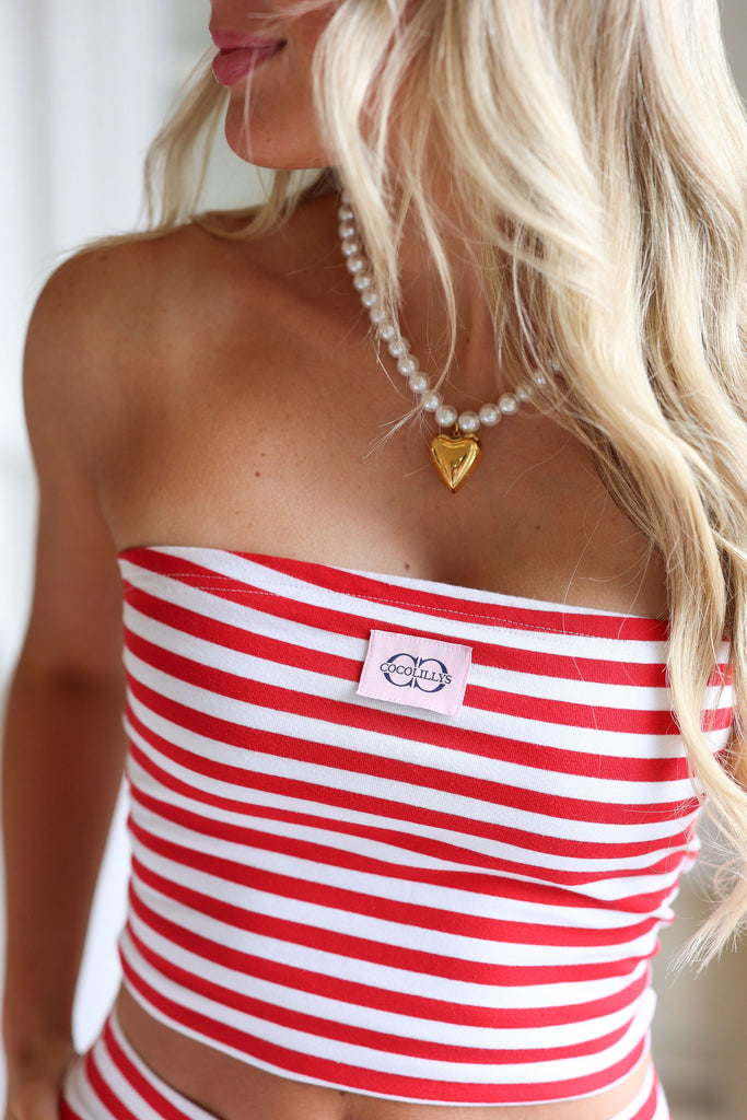 This strapless top features a trendy cropped cut and adorned with the Cocolillys emblem. This collection is perfect to mix and match! It offers endless styling options to brighten up your wardrobe. Available in a variety of colors!