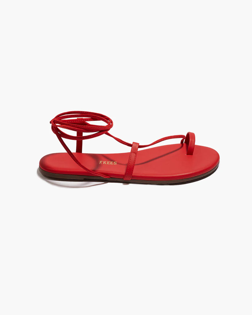 Barely-there, wrap-up sandals with a delicate toe loop and two perfectly placed straps for support. Handcrafted from soft Brazilian napa leather with adjustable suede ankle ties, a cushioned insole, and a rubber outsole for comfort.