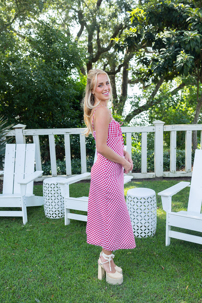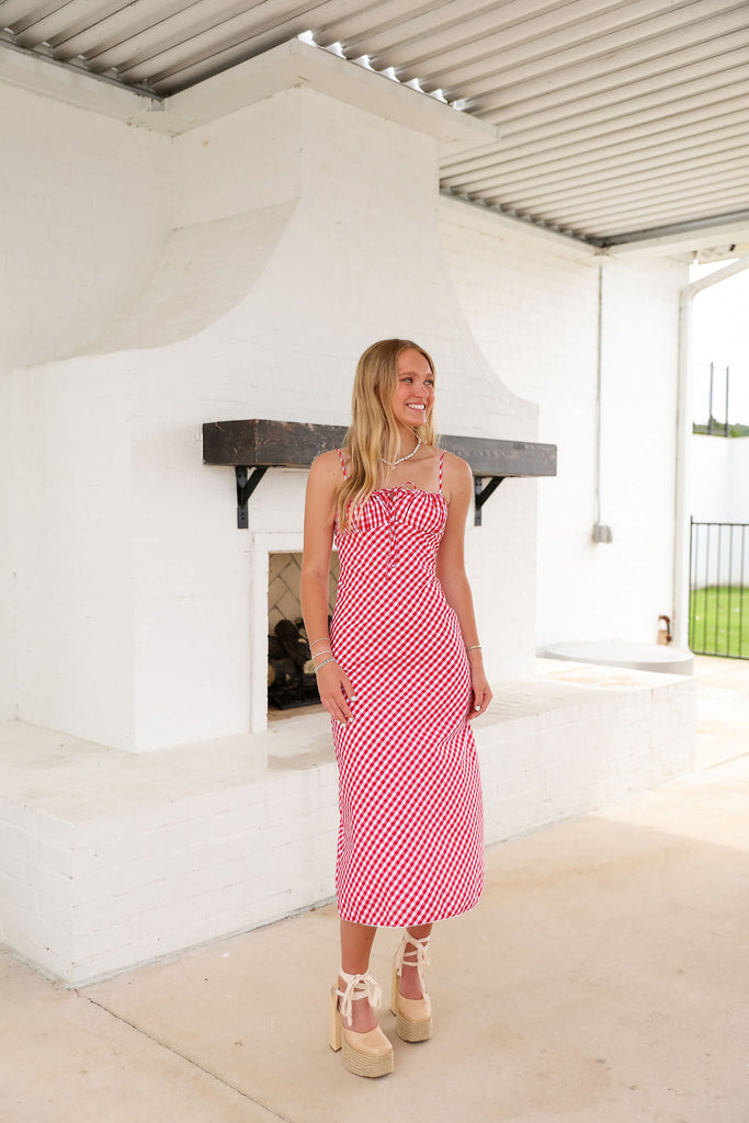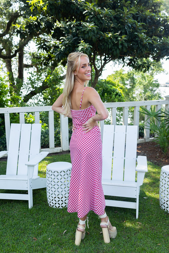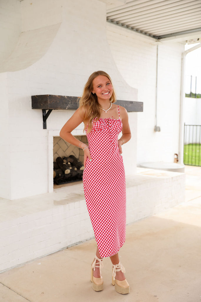 The Kris Dress blends a classic silhouette with a vintage gingham print for a touch of nostalgic charm. A softly curved neckline and flared skirt make it easy to style for both casual and dressed-up occasions. With adjustable shoulder straps and neckline detailing, it offers comfort all day long.