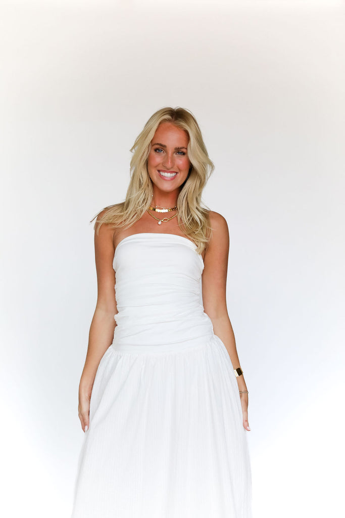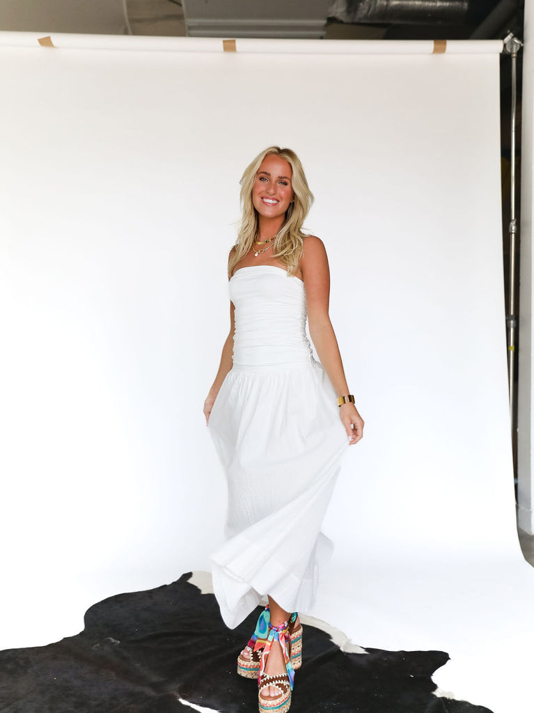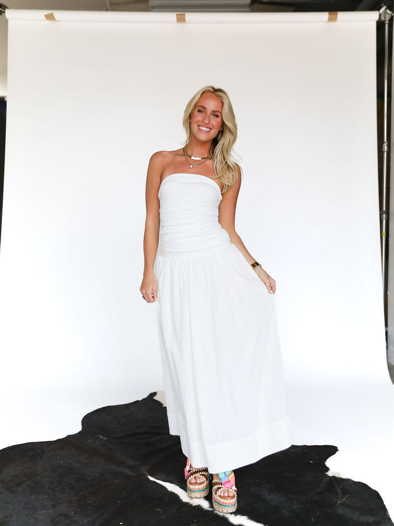 This elegant dress features a flattering drop waist silhouette. Perfect for both daytime events and evening occasions, its clean lines and refined design make it a versatile addition to any collection.