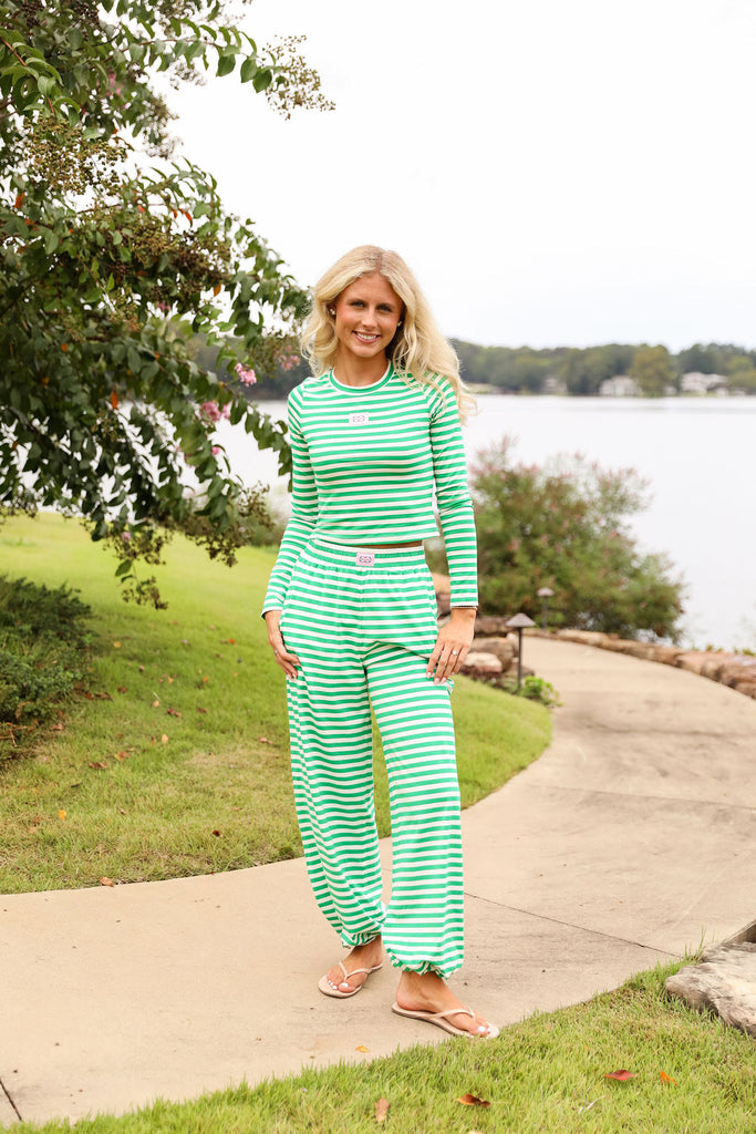 Stripe Oversized Long Sleeve Tee - Kelly Green