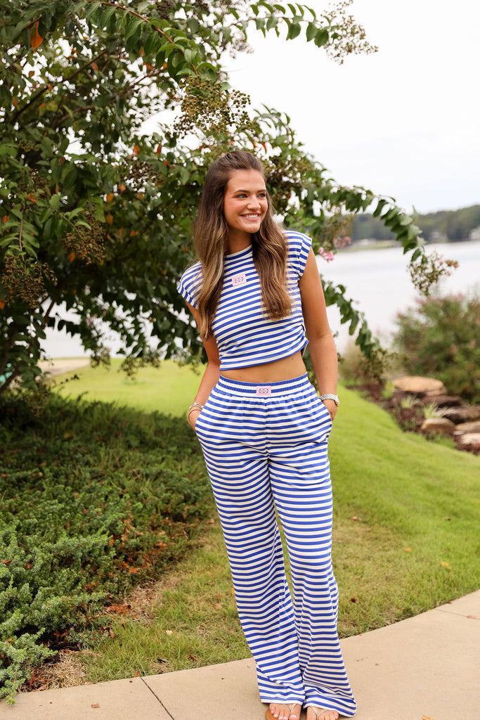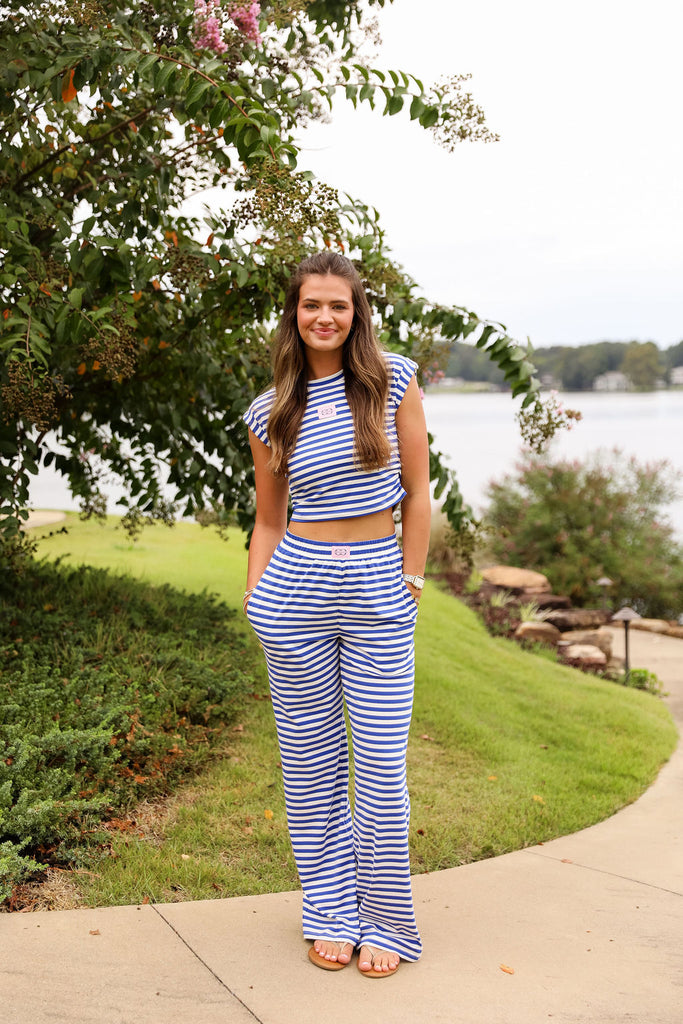 Stripe Oversized Long Sleeve Tee - Blueberry