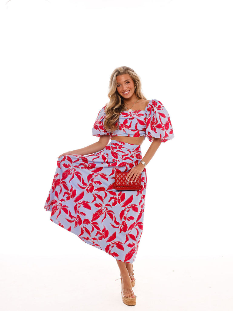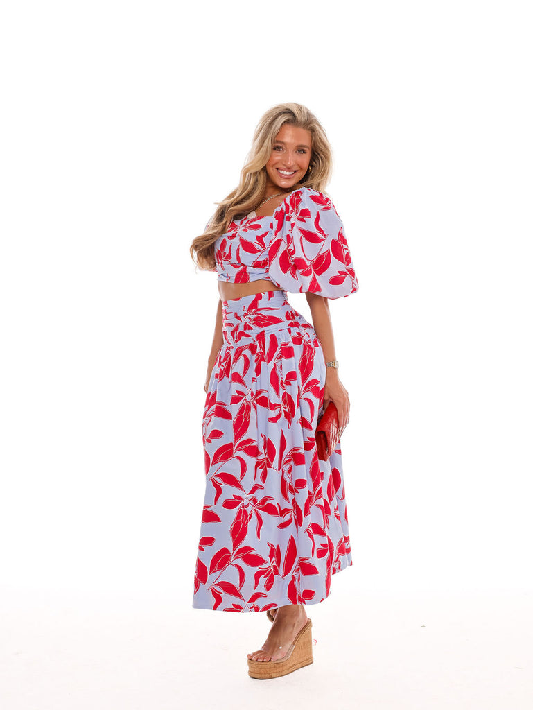 Designed with a smocked back and puff sleeves, this crop top pairs perfectly with the matching Pacifica skirt (sold separately). Effortlessly chic!