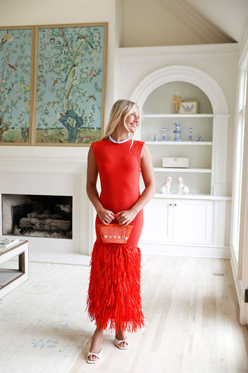 Fierce meets feminine in this orange stunner, featuring a sleek sleeveless silhouette, flattering fitted design, and a daring scoop open back. It’s perfect for game day, GNO or nights that deserve to be remembered.