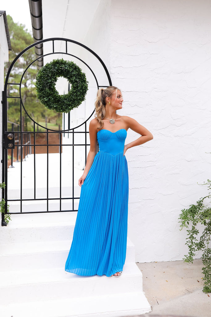 The Valena Gown features a flattering corset-style fit paired with a flowy skirted bottom, creating an elegant silhouette. Available in multiple colors, this gown balances classic simplicity with bold sophistication, making it perfect for any refined occasion.