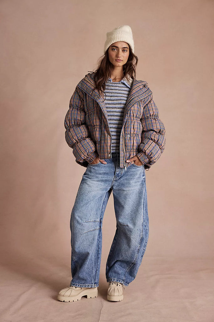 A playful twist on a classic silhouette, this puffer jacket features a boxy, slightly cropped silhouette, relaxed drop shoulder sleeves, and an adjustable drawcord waist for a versatile fit.
