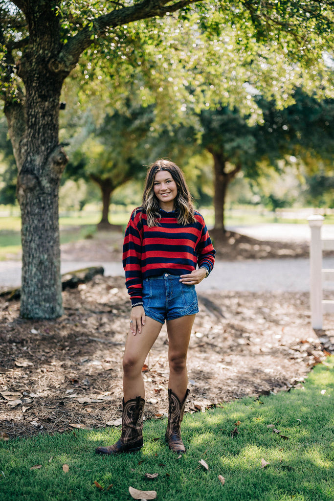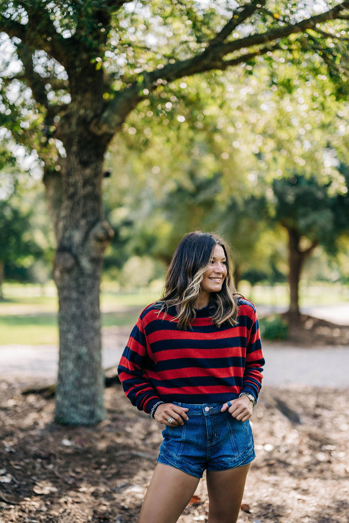 We The Free Into The Blue Pullover - Navy Red Combo Stripe