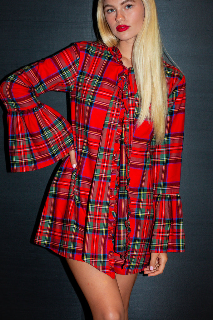 We are loving this long-sleeve mini dress. The graceful bell sleeves add a touch of vintage-inspired charm, while the charming bow tie neckline creates an instantly polished silhouette.