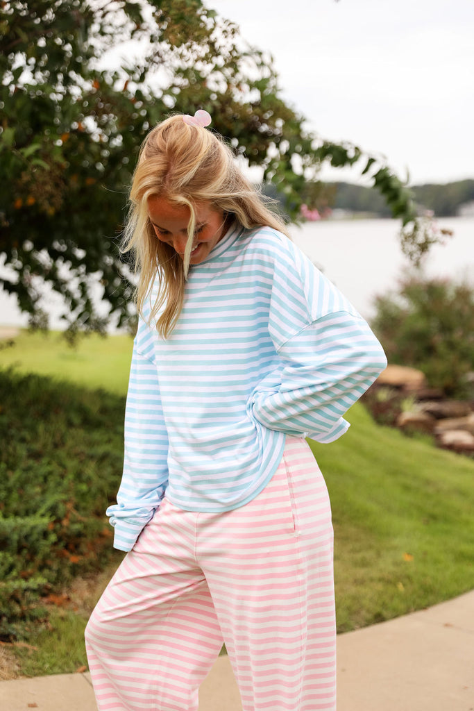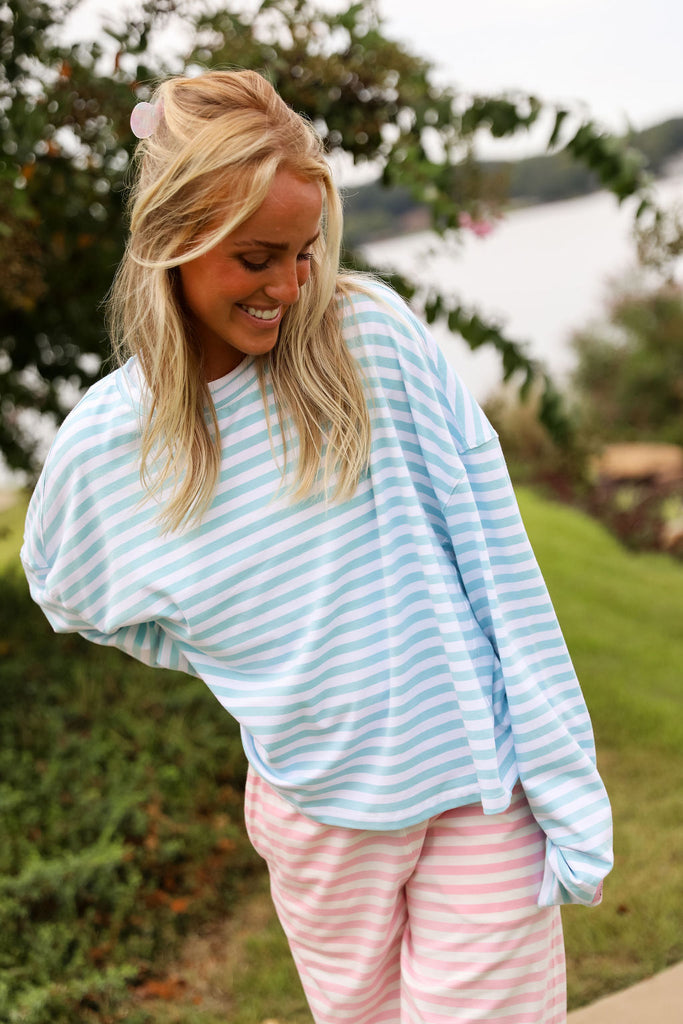 Stripe Oversized Long Sleeve Tee - Tiffany Blue