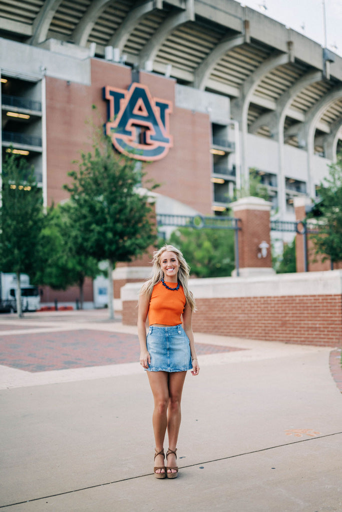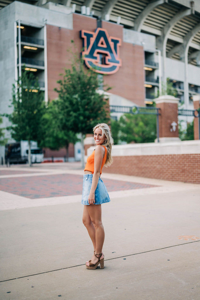 Sleeveless ribbed knit light weight sweater top in perfect orange.