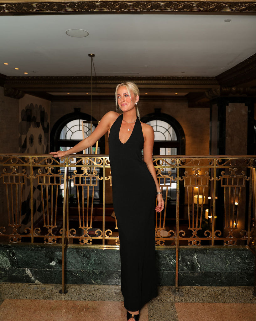 Say hello to warmer days in the Kate Halter Dress! Made from lightweight knit in classic black, this halter is perfect for layering over your favorite swim or dressing up with heels for a sunset dinner.