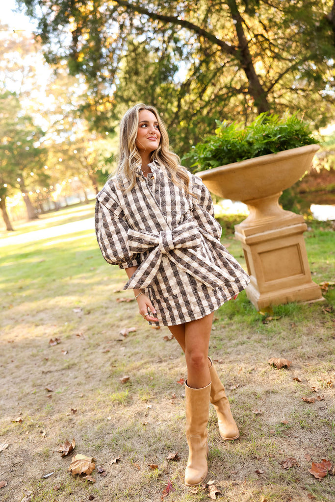 Upgrade your style with the Quinn Quilted Coat Dress! The cute quilted design and included belt elevate this dress to a whole new level. Perfect for adding a unique touch!